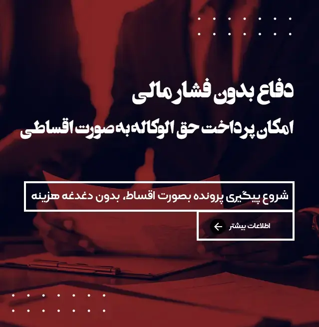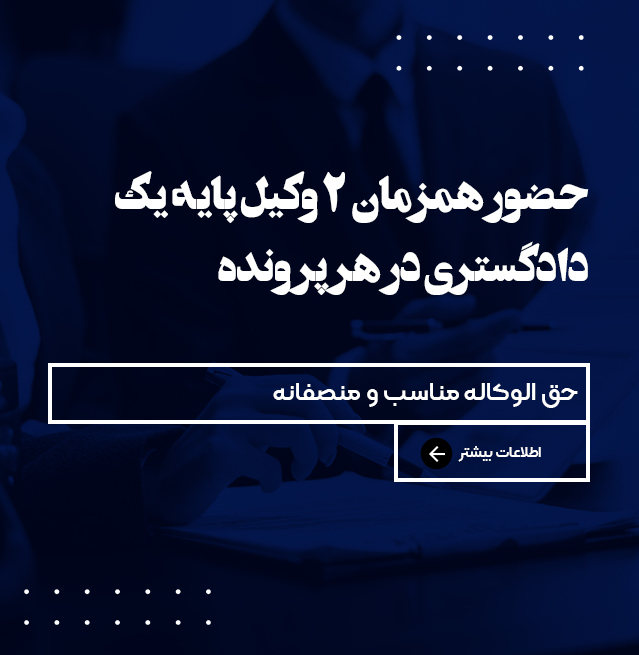 در زمان وکیل، هر پرونده به صورت همزمان توسط دو وکیل پایه یک دادگستری بررسی و پیگیری می شود، با حق الوکاله ای شفاف و متناسب با شرایط شما.